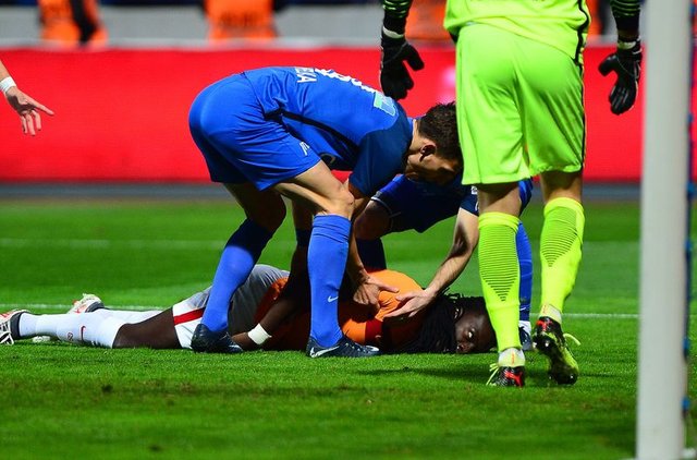 Sedyeyle saha kenarına alınan futbolcu bilincinin açılmasının ardından 10-15 dakika sonra yedek kulübesine oturdu.