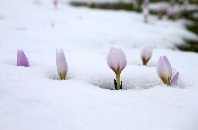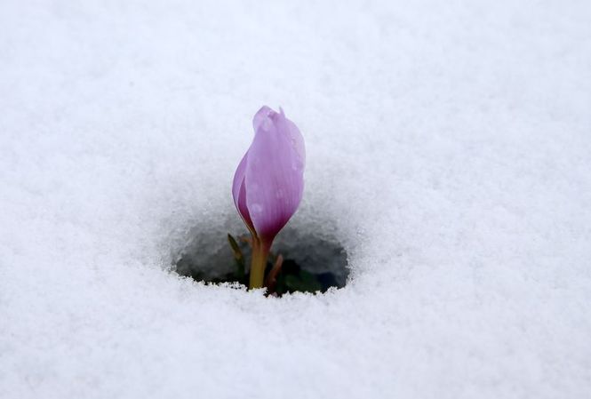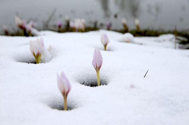 Baharın habercisi çiğdemler kar altında kaldı
