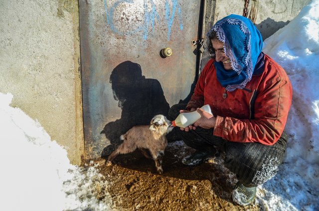 "Oğlak ve kuzular, anne sütü az olunca aç kalıyor ve gelişimi yavaşlıyor. Biz de oğlak ve kuzuları sağlıklı büyütebilmek için ineklerden süt sağıp onları biberonla besliyoruz. Her zorluğa rağmen hayvanlarımızı çok seviyoruz. Oğlakların doğması bizim için çok değerli. Onlarla sürekli vakit geçirdiğimiz için bir süre sonra çocuğumuz gibi oluyorlar."