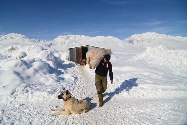 94 Mahallesi'nde yaşayan besici Umut Candaş Yarar, AA muhabirine yaptığı açıklamada, kar yağışı ve soğuk havanın işlerini zorlaştırdığını söyledi.