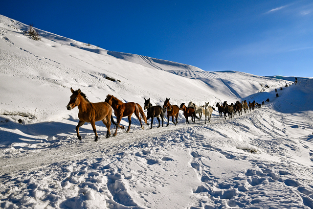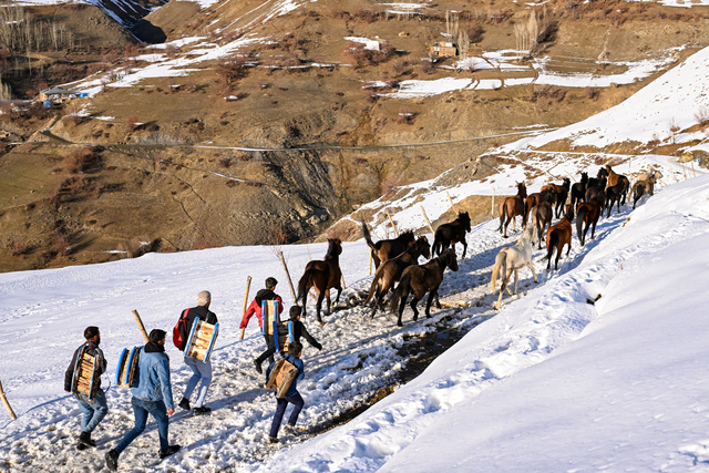 Akşam saatlerinde yaylaya giden gençlerin, karın eridiği yamaçlarda otlatılan at, katır ve eşekleri karlı tepelerden indirmesi güzel görüntüler oluşturdu.