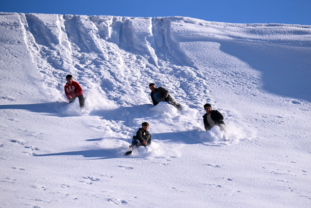 Gençlerden Şahabettin Bülbül, vakit buldukça kızaklarıyla kaydıklarını söyledi.