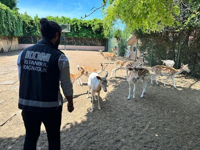 İstanbul'da, ikamette bakılması yasak olan 12 yabani geyik ile 6 tavus kuşunu besleyen kişi gözaltına alındı