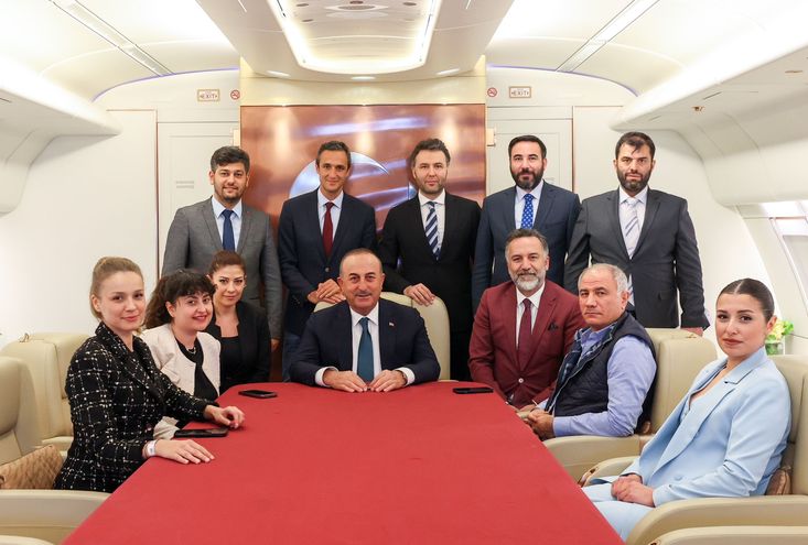Bakan Çavuşoğlu, Brezilya dönüşünde uçakta Mehmet Akif Ersoy'un da bulunduğu gazetecilerin sorularını yanıtladı.