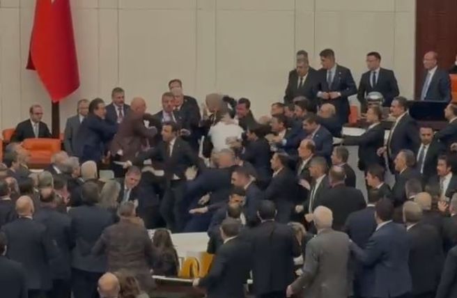 AK Parti'li Gül, usul tartışmasının açılamayacağını ifade etti ve yemin törenine geçilmesini talep etti. Meclis Başkan Vekili Bozdağ da tutumunun yanlış olmadığını belirtti ve Adalet Bakanı Akın Gürlek'i yemin etmek üzere kürsüye davet etti. Bunun üzerine CHP milletvekilleri kürsüye doğru hareket etti. AK Parti grubu da kürsüye yönelince milletvekilleri karşı karşıya geldi. Meclis Başkan Vekili Bozdağ, Bakan Gürlek'ten yemin etmesini isterken milletvekilleri arasında sözlü sataşmalar eşliğinde arbede yaşandı. Bu sırada AK Parti Ankara Milletvekili Osman Gökçek ile CHP Şanlıurfa Milletvekili Mahmut Tanal, yumruk yumruğa kavga etti. Bunun üzerine Meclis Başkan Vekili Bozdağ, birleşime 15 dakika ara verdi.