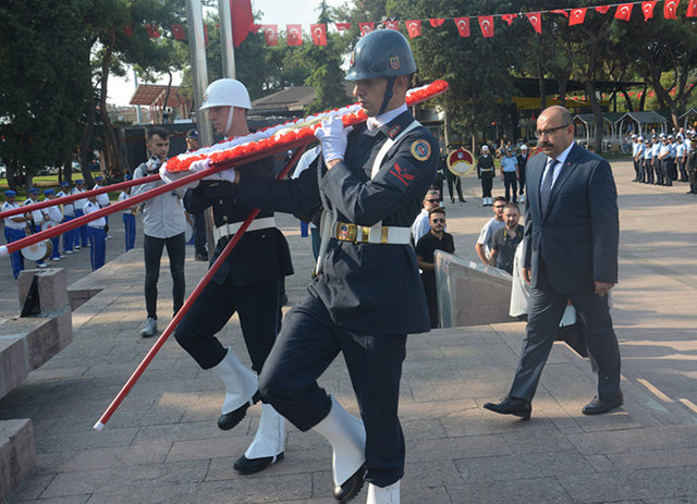 Kutlamalar Balıkesir Valisi İsmail Ustaoğlu, Garnizon ve 9. Ana Jet Üs Komutanı Hava Pilot Tuğgeneral Cihangir Kemal Yüzçelik ve Büyükşehir Belediye Başkanı Yücel Yılmaz tarafından Atatürk Anıtı'na çelenk bırakılmasıyla başladı.