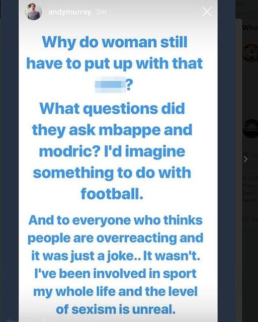 Dünyaca ünlü tenisçi Andy Murray, sosyal medya hesabından 'İnsanların bu olay karşısında aşırı tepki verdiğini ve olayın şakadan ibaret olduğunu düşünen varsa yaşanan durum hiç de öyle değildi' mesajını paylaştı.