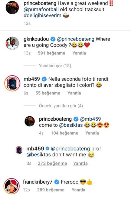 Beşiktaş'ın yıldızı Kevin-Prince Boateng ile İtalyan golcü Mario Balotelli'nin Instagram'daki yazışması dikkat çekti. Balotelli, 'Beşiktaş'a gel' diyen Boateng'e 'Beşiktaş beni istemiyor' diye cevap verdi