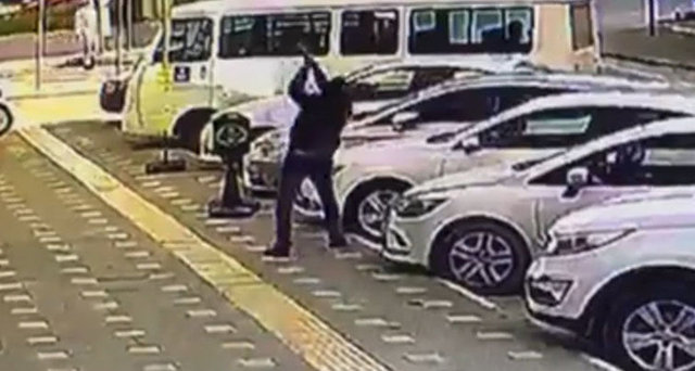 A.G.'nin balta ile araçlara vurduğu anlar ise çevredeki bir iş yerinin güvenlik kamerasına yansıdı.