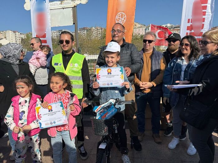 Etkinlik sonunda düzenlenen çekilişte bazı çocuklara bisiklet ve çeşitli bisiklet ekipmanları hediye edildi.