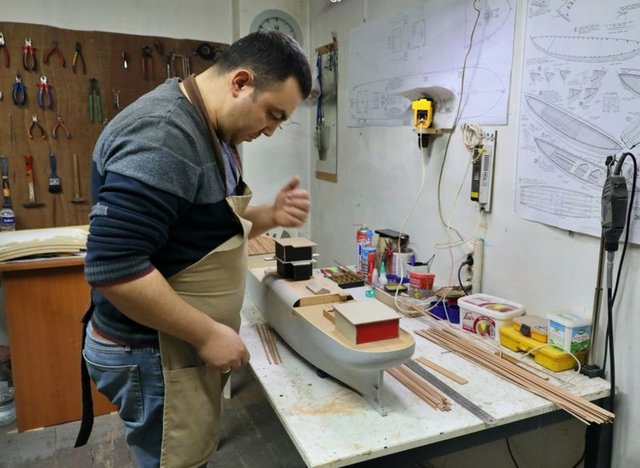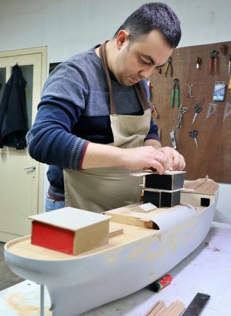 "Tersanede ne yapılıyorsa model olarak küçültülmüşünü yapıyoruz. Birebir her şeyi var üzerinde. Direği, üzerindeki kulübeler, hatta kapılar açılır kapanır şeklinde, ambarlarını, vinçlerini... Bu gemiler bittikten sonra denize koyup yüzdüreceğim derseniz, yüzecek gemiler."