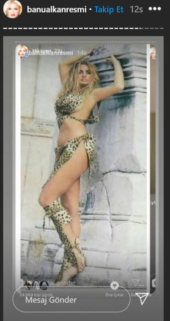 Alkan bir dönem giydiği yeşil elbisesinin de taklit edildiğini öne sürürek, "Kumaşlarıma kadar, seçtiğim renklere kadar kopyacı Kezban" mesajını yayınladı.