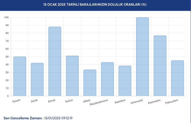 İSKİ'nin paylaştığı İstanbul barajları doluluk oranı şu şekilde: