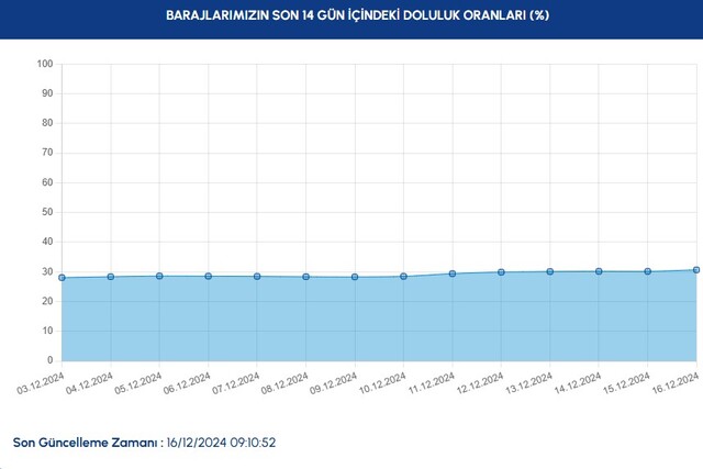 Baraj doluluk oranları İSKİ tarafından duyuruluyor. İstanbul Su ve Kanalizasyon İdaresi (İSKİ) 16 Aralık barajlardaki güncel durumu açıkladı. İşte 16 Aralık baraj doluluk oranı