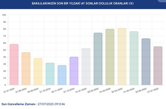 İSKİ BARAJLARIN DOLULUK ORANI 27 TEMMUZ 2025