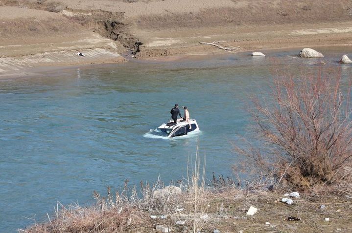 Tunceli'de sürücüsünün direksiyon hakimiyetini kaybettiği araç Uzunçayır Baraj Gölü'ne uçtu. Can pazarının yaşandığı anlarda sürücünün kurtarılmayı beklediği anlar kameraya yansıdı
