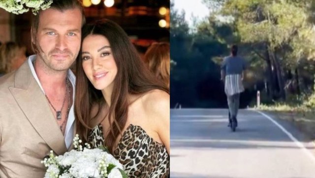 Bir orman yolunda Tatlıtuğ'un scooter kullanırken çektiği videoyu yayınlayan Dizer, gönderisine "Mutlu yıllar aşk" notunu düşmüştü.