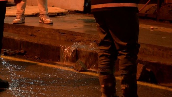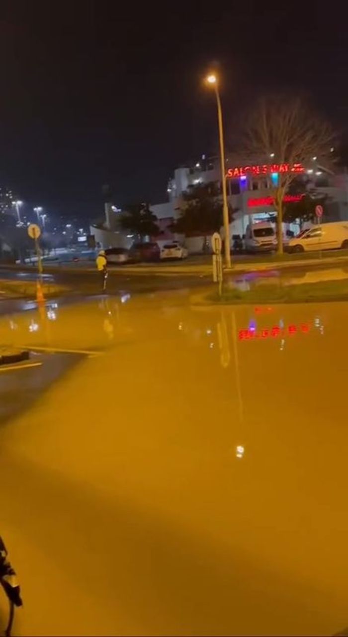 Akan sular nedeni ile cadde göle dönerken, ihbar üzerine olay yerine İSKİ ve itfaiye ekipleri sevk edildi. Ekipler su akışını kestikten sonra çalışmalara başladı.