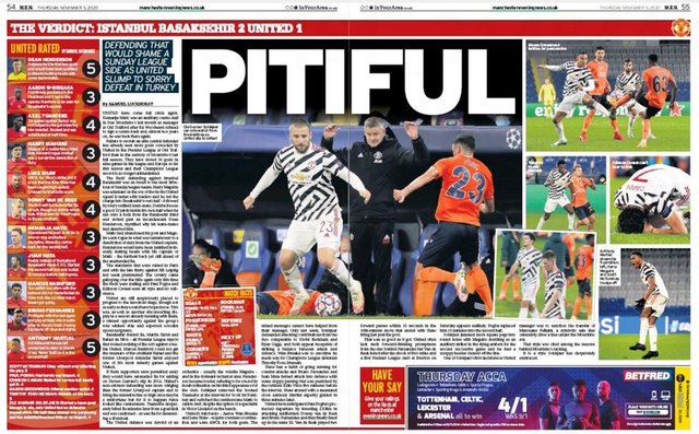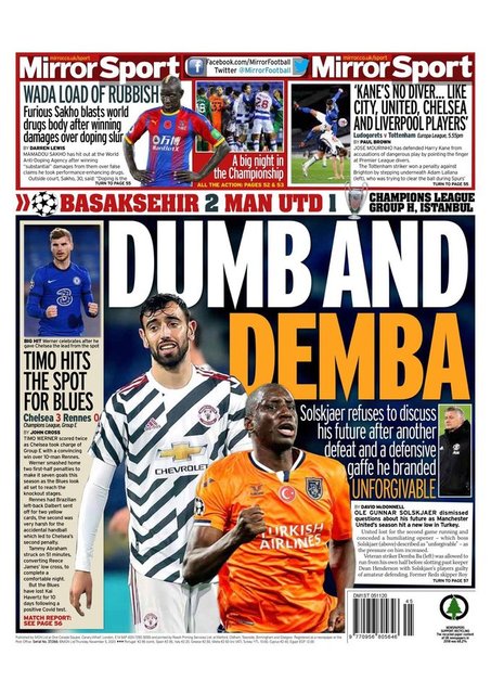 Daily Mail: Kırmızı Şeytanlar, Şampiyonlar Ligi'ne ilk kez katılan Başakşehir'e ilk yarıda yedikleri iki dikkatsiz golle yenilirken Chelsea'nin eski oyuncusu Demba Ba golünü attı
