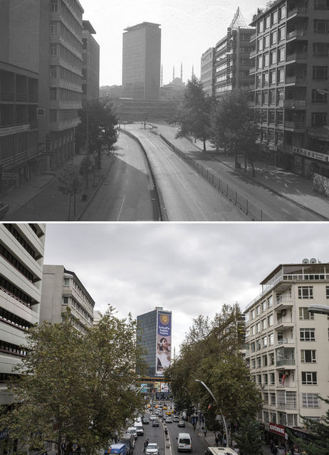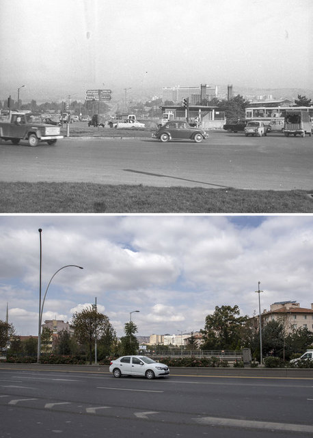 Anadolu Ajansı'nın arşivinde yer alan eski Ankara fotoğrafları, günümüzdeki haliyle derlendi. 1973 yılında ve günümüzde çekilen 1011 Kavşağı.