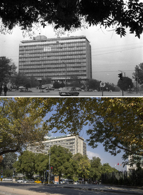 1950 yılında ve günümüzde çekilen Atatürk Bulvarındaki TRT Ankara Radyosu binası.