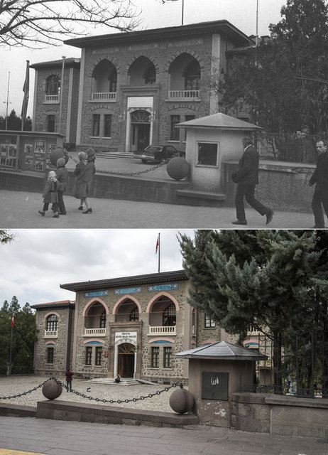 1971 yılında ve günümüzde çekilen Ulus'taki TBMM ikinci meclis binası.