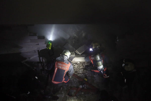 Oksijen tüpü ve gaz maskesi takarak alevlere müdahale etmeye çalışan ekipler, yangının çıktığı alana ulaşabilmek için binanın duvarını yıktı. Balyozlarla duvarı yıkan ekipler kısa sürede binanın otopark kısmına ulaşarak yangını söndürdü.