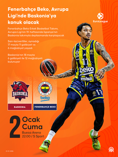 Fenerbahçe Beko-Baskonia maçı 2 Ocak Cuma günü saat 22:00'de başlayacak.