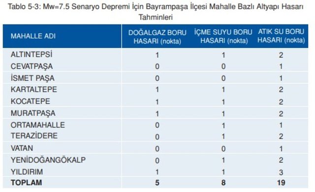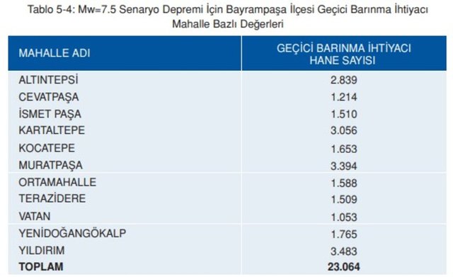 7,5 OLASI DEPREMDE BAYRAMPAŞA BARINMA İHTİYACI TAHMİNİ