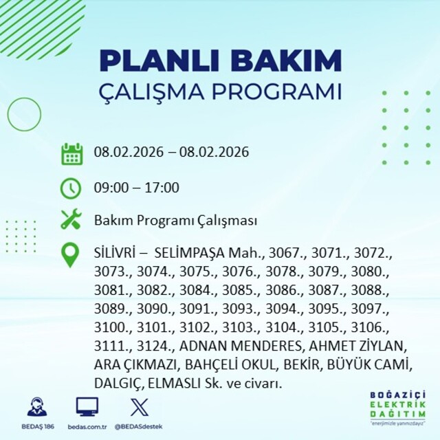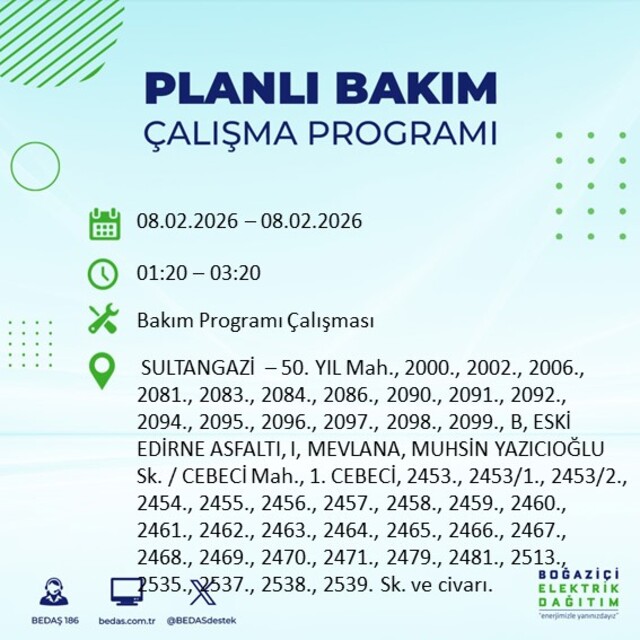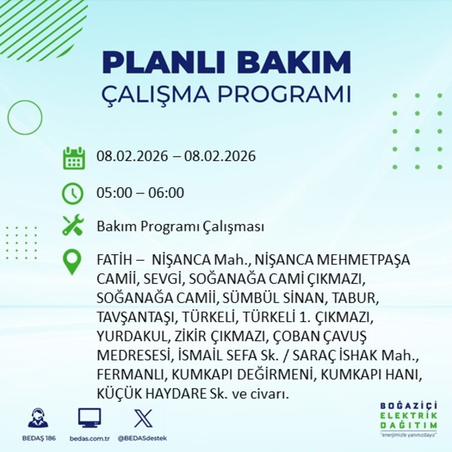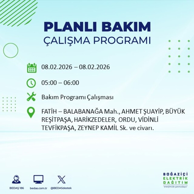 İstanbul'un 10 ilçesinde elektrik kesintisi! 8 Şubat 2026 İstanbul'un hangi ilçelerinde elektrikler kesilecek?