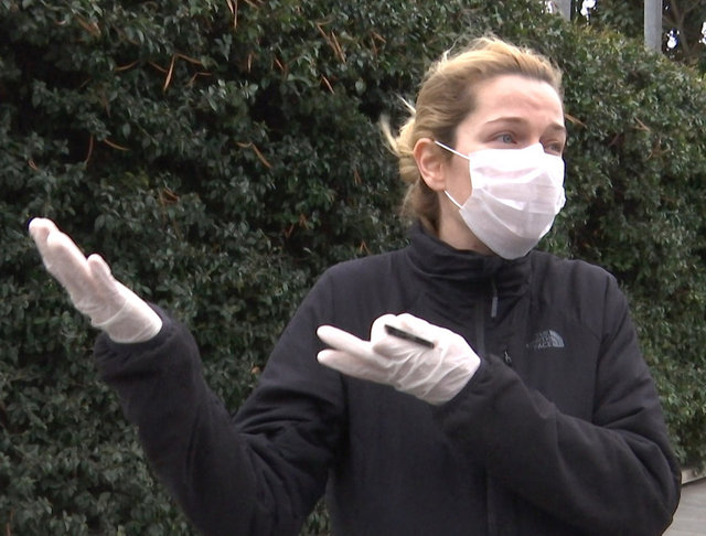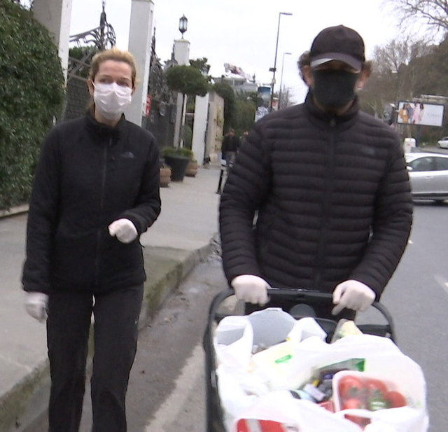 Salgına karşı maske ve eldiven kullarak gerekli izolasyon kurallarına uyan çift, röportajın ardından evlerinin yolunu tuttu.