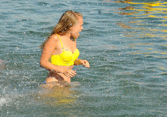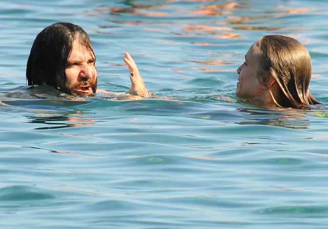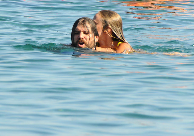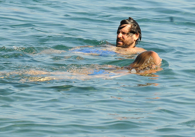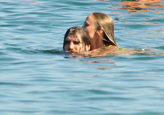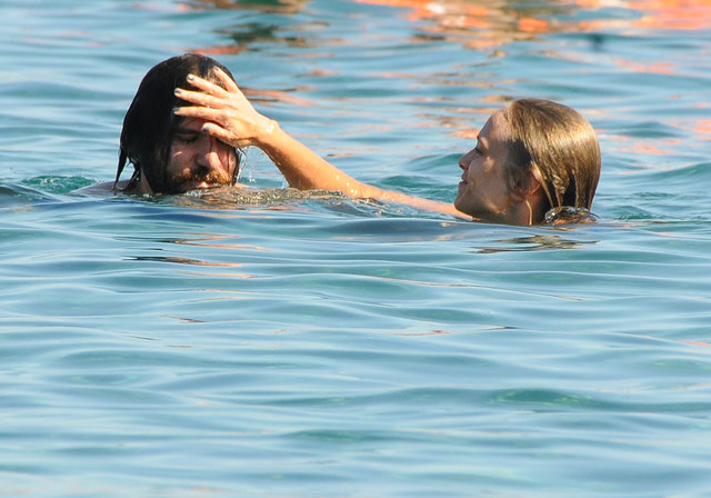 Saatlerce denizde kalan çift adeta güneşin ve denizin tadını çıkardılar.