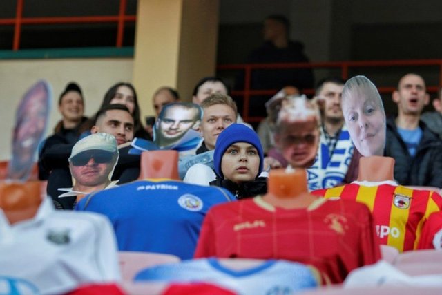 Tüm dünyayı etkisi altına alan koronavirüs salgınına rağmen futbola ara vermeyen Belarus'tan ilginç görüntüler gelmeye devam ediyor. Doğu Avrupa ülkesinde bu kez sanal bilet satın alan bazı futbolseverler maçı tribünlerde cansız manken olarak izledi!