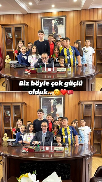 Daha sonra Erdal Beşikçioğlu, çocuklarla birlikte makamına geçip; "Biz böyle çok güçlü olduk" notuyla bir fotoğraf daha paylaştı.