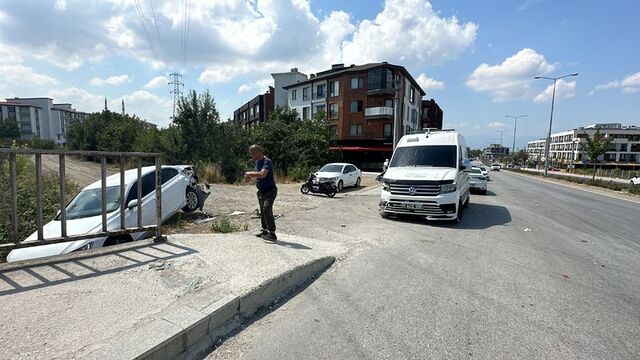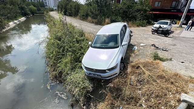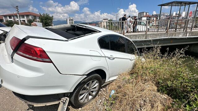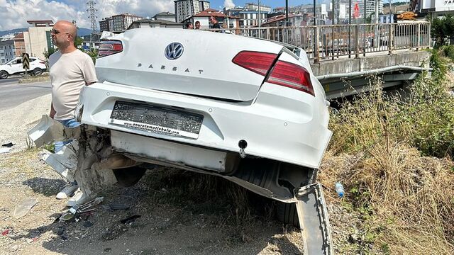 Köprünün kenarındaki otomobil, dere kenarında asılı kaldı. Hasarlı kaza sonrası bölgeye polis ekibi sevk edildi.