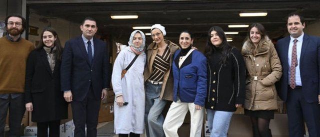 Hadid, depremden bu yana Türkevi'nde yoğun yardım çalışmaları yürüten gönüllülerle de fotoğraf çektirdi.