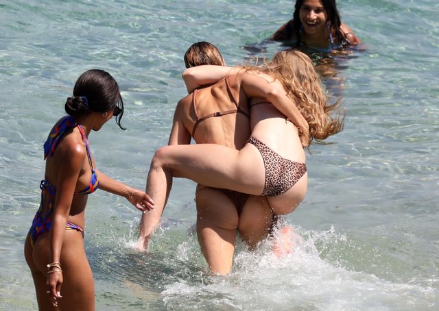 Bir ara Bella Hadid, ablası Gigi Hadid'i zorla denize soktu.