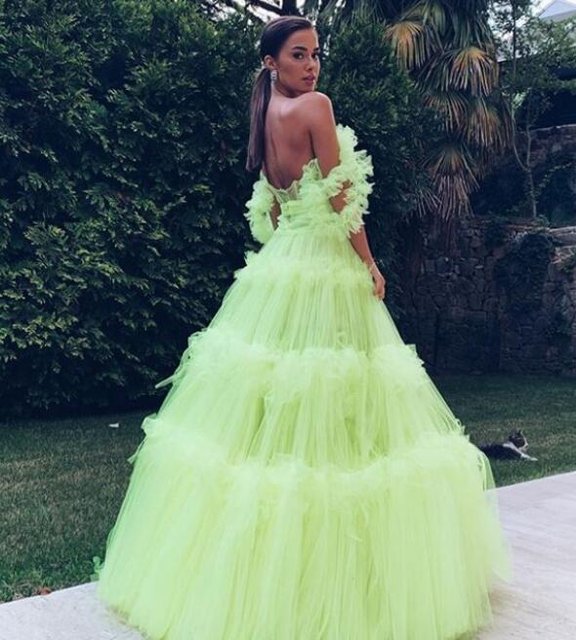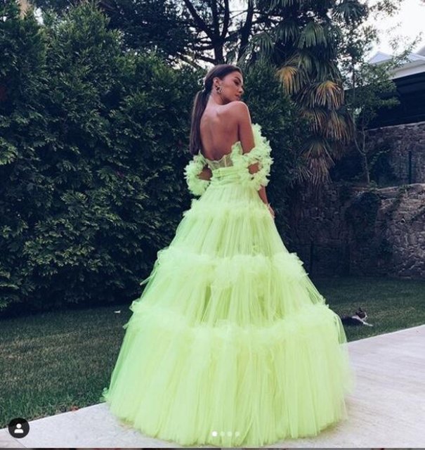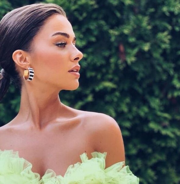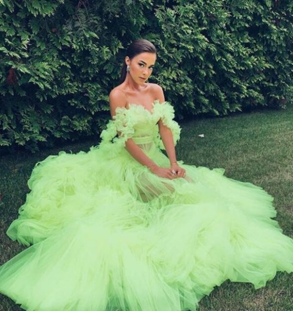 Soral, güzelliği ve fıstık yeşili kıyafetiyle beğeni topladı.