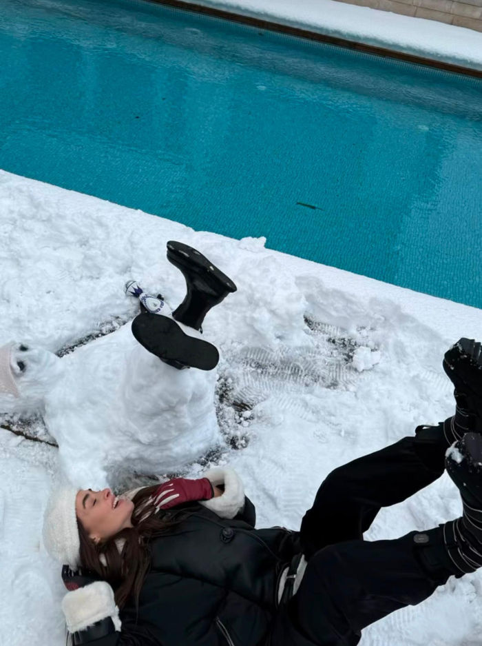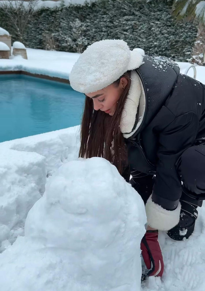 Oyuncu Bensu Soral, İstanbul'da etkili olan kar yağışını fırsat bilip, kendini evinin bahçesine atıp keyifli anlar yaşadı.