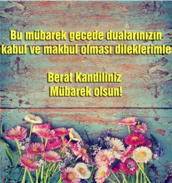 Her sabah güneşle doğan umutlar, her yeni bahar ile tazelenen mutluluklar ve açan her yeni çiçekte gizlenen güzellikler sizinle olsun. Berat Kandiliniz mübarek olsun.