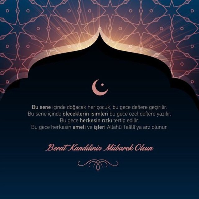 Her sabah güneşle doğan umutlar, her yeni bahar ile tazelenen mutluluklar ve açan her yeni çiçekte gizlenen güzellikler sizinle olsun. Berat Kandiliniz mübarek olsun.