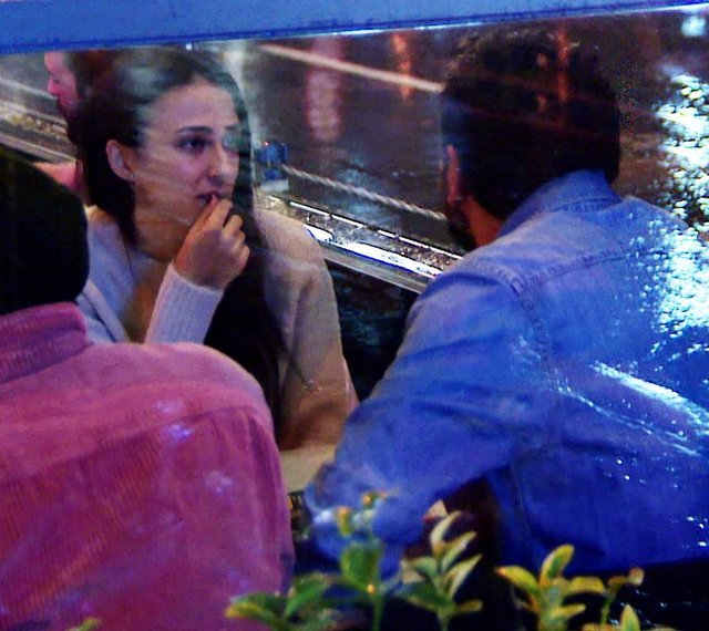 Mekanda karşılıklı masalarda oturan ünlü çift, objektiflere böyle yansıdı.