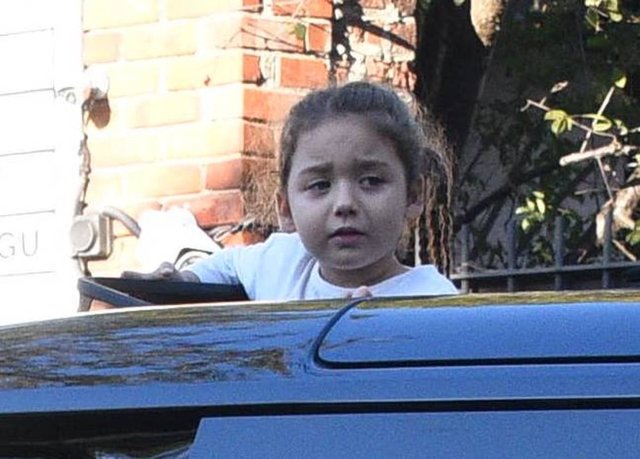 Babası tarafından otomobile bindirilen Arya, daha sonra açılır tavandan kafasını uzatıp, basın mensuplarına poz verdi.