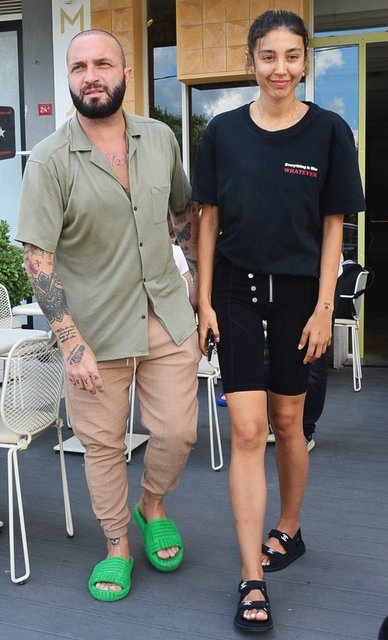 Yeşil renkli terlikleriyle dikkat çeken Berkay Şahin, "Seviyorum terliklerimi." dedikten sonra eşi Özlem Ada Şahin ile oradan ayrıldı.