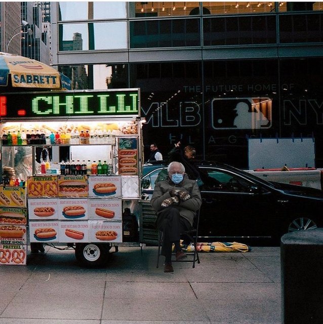 İnternet kullanıcıları, bu sayede film karelerini, ikon haline gelmiş fotoğrafları, resimleri ya da şehir meydanlarını Sanders'ın karesiyle birleştirdi.