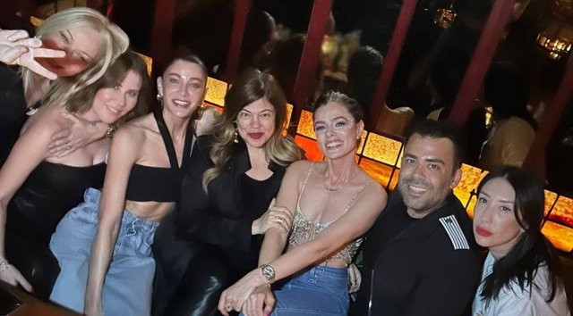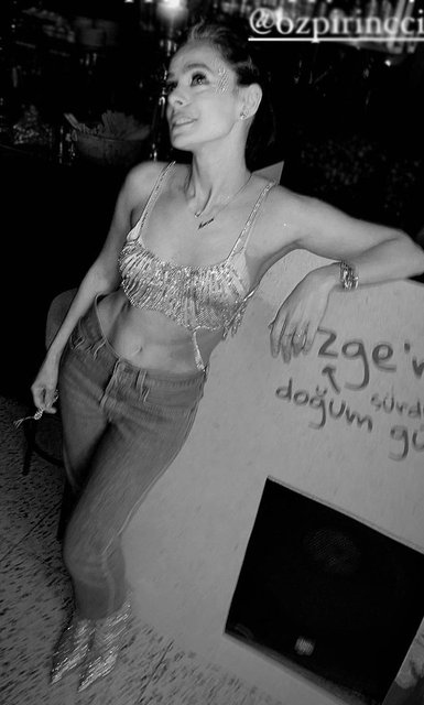 Geceye ait renkli fotoğraflar da sosyal medyada paylaşıldı. Fotoğraflarda, Özge Özpirinçci'nin doğum günü için kot pantolonunun üzerine ışıltılı bir büstiyer giymeyi tercih ettiği görüldü.
