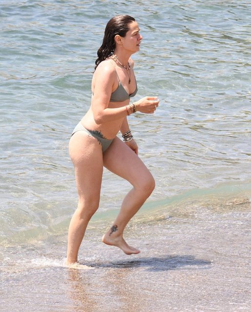 2021'de Kızı Mercan’ı dünyaya getiren Özge Özpirinçci, denize Yalıkavak'ta girerken eşi Burak Yamantürk Bitez'deydi.