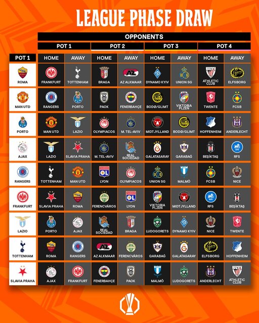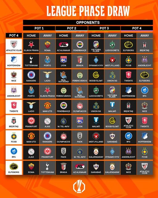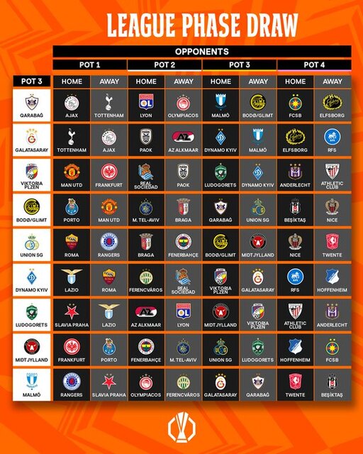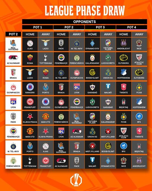 Avrupa futbolunun kulüp düzeyindeki iki numaralı organizasyonunda lig aşamasının kura çekimi, Monako'daki Grimaldo Forum'da gerçekleştirildi.