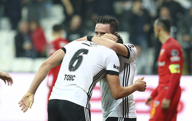 SÜPER LİG HEYECANI HTSPOR ARENA'DA... BEŞİKTAŞ - KAYSERİSPOR MAÇININ DAKİKA DAKİKA ÖZETİ İÇİN TIKLAYINIZ...Maçın ilk golü 31. dakikada geldi. Sol kanattan kazanılan köşe vuruşunu Adriano Correia çabuk kullandı. Ricardo Quaresma, bekletmeden rabona hareketi ile ortasını yaptı ve Dusko Tosic, arka direkte uygun pozisyonda kafa vuruşunu yaparak topu filelerle buluşturdu.