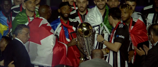 Anonsların yapılmasının ardından Kaptan Atiba’nın teslim aldığı kupa, siyah-beyazlı futbolcuların ellerinde yükseldi.